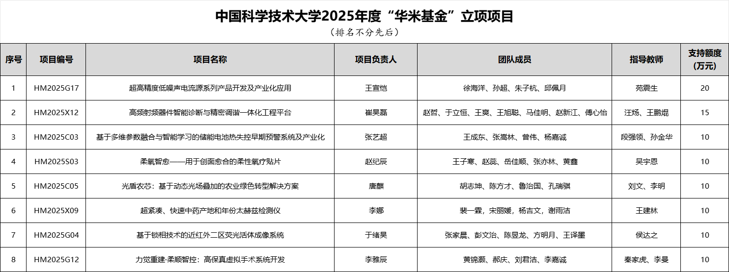 根据工作安排,odapp官网2025年度“华米基金”经过项目申报、资格审查、尽职调查、投票表决、校内公示、预立项等环节,确定“超高精度低噪声电流源系列产品开发及产业化应用”等8个项目(详见附件)为2025年度“华米基金”立项项目,予以资助,特此通知。